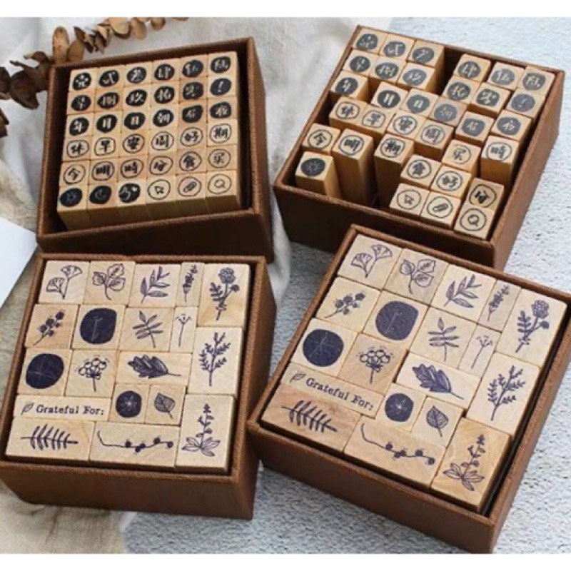 盒裝漢字植物木質印章手帳素材復古印章可愛印章 蝦皮購物